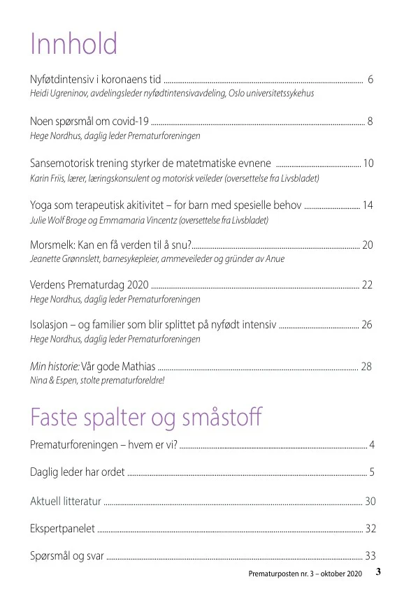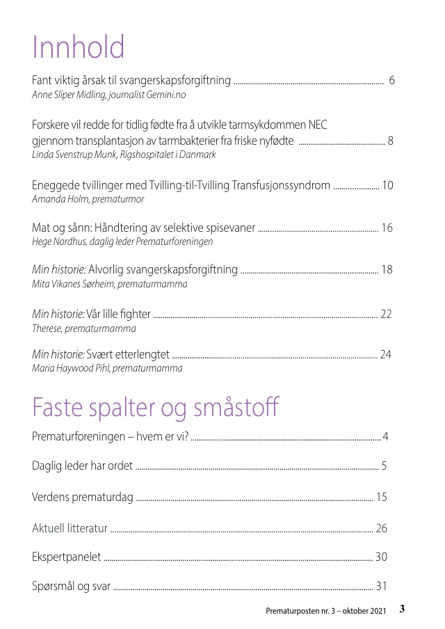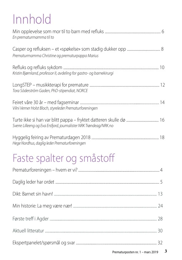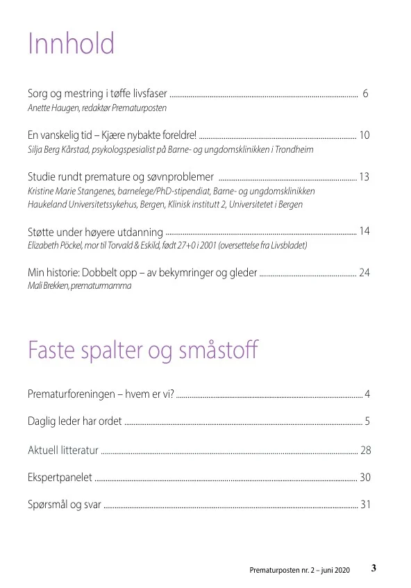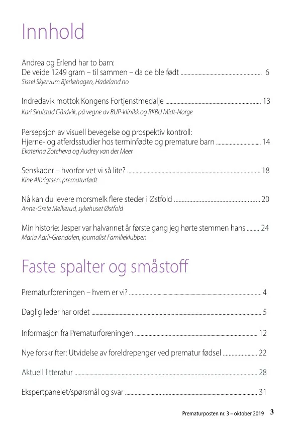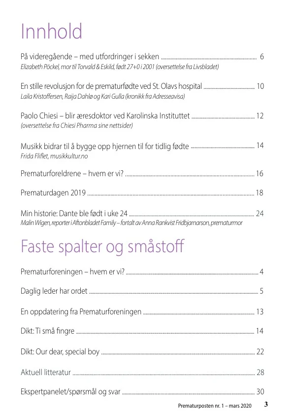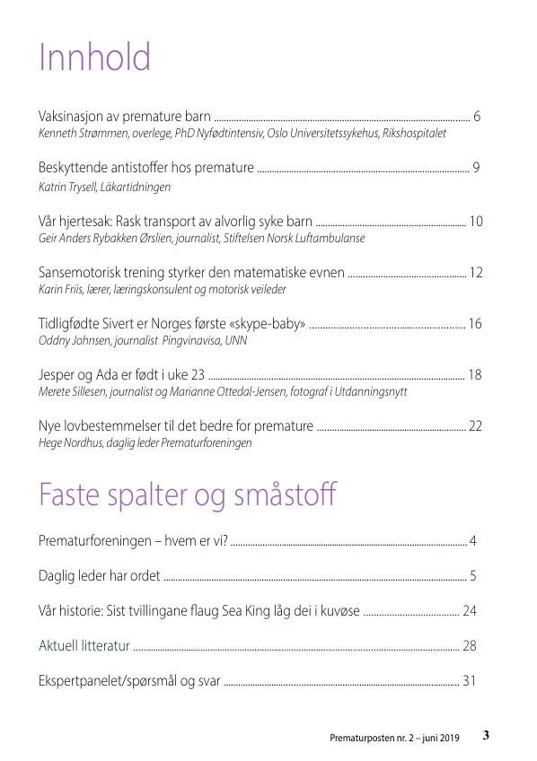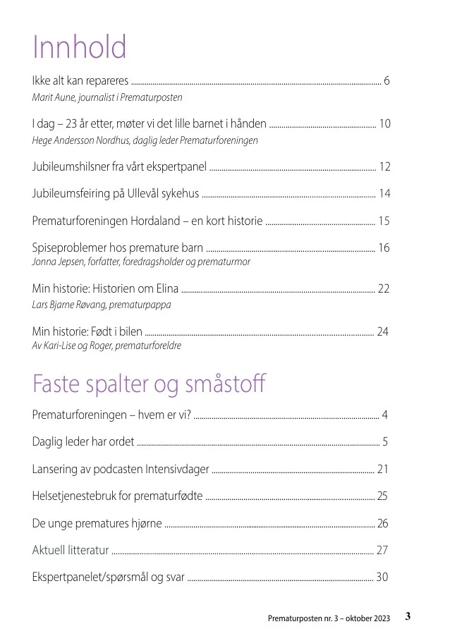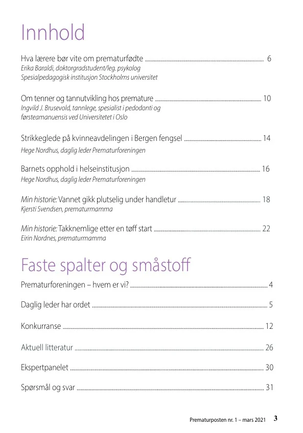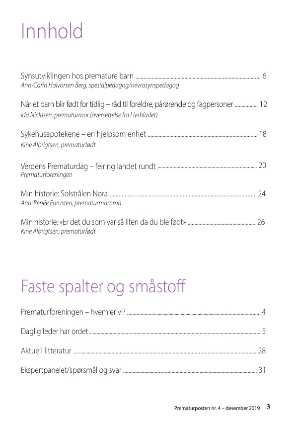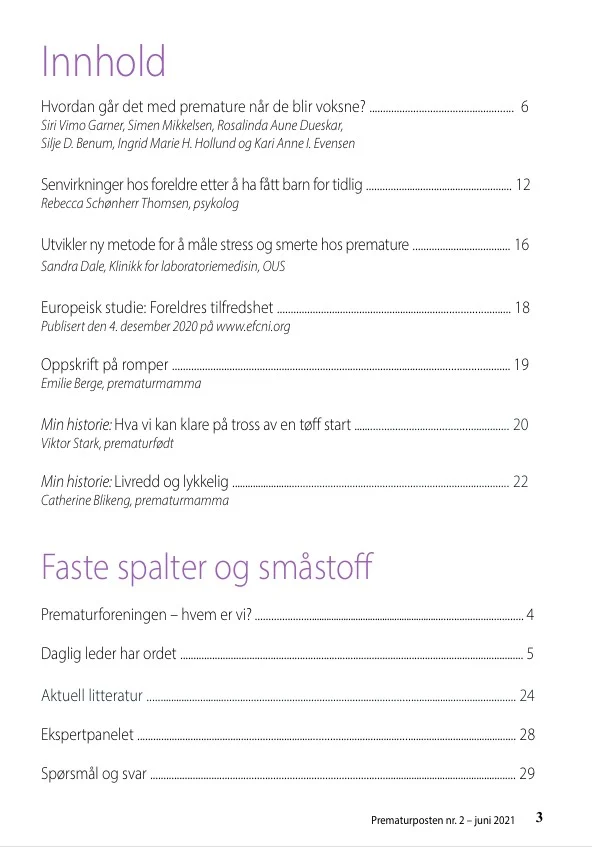 Prematurposten er vårt medlemsblad, der vi deler historier, kunnskap og nyheter om prematuritet. Her finner du faglige oppdateringer, personlige erfaringer og informasjon om foreningens arbeid – samlet for å støtte og styrke foreldre til premature barn.